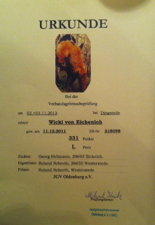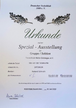 Ida erhielt die Bewertung V (vorzüglich) was uns natürlich sehr gefreut hat!