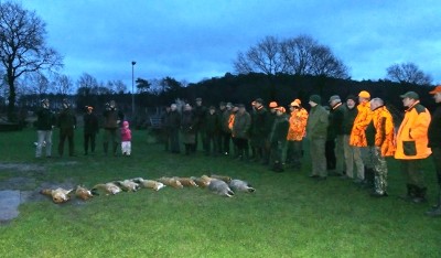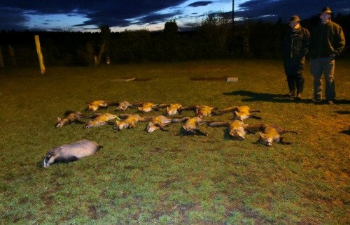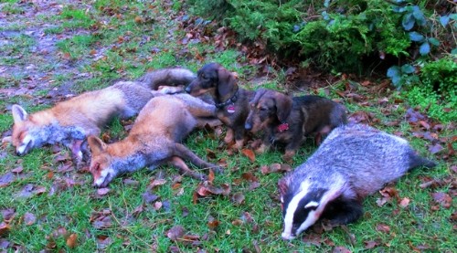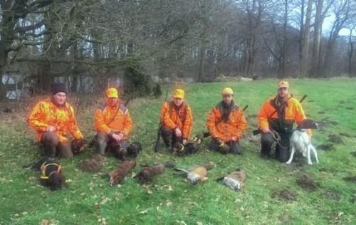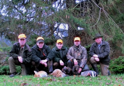Am Ende des Suchentages lagen gesamt 11 Füchse und 2 Dachse auf der Stecke.