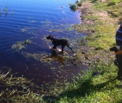 Ohne jede Scheu wurde von beiden Hunden das Wasser angenommen und der Dummy aufgenommen und gebracht.