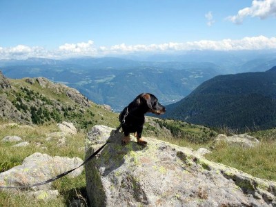 Dies bewies Burli, aus Amiras letztem Wurf, mit seinem Frauchen und Herrchen in den Bergen.
