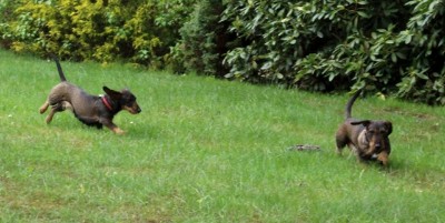 Auch mit Birka (aus unserem letzten Wurf) hat Wicki auf dem Klosterhof schon Freundschaft geschlossen.