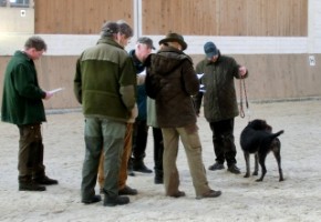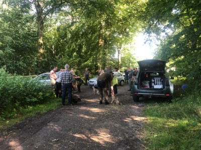 Nach der Begrüßung durch den Vorsitzenden der Gruppe und der Richter ging es nach der Prüfung der Papiere und Chipnummern der Hunde direkt in das Revier.