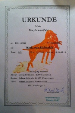 Am 02/03.11.2013 hat Wicki beim LGV Oldenburg die VGP und BTR erfolgreich abgelegt.